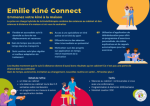 La rééducation hybride combine les bénéfices d’une séance en cabinet avec un suivi personnalisé à domicile, permettant une prise en charge complète et flexible pour une récupération optimale. Cette méthode est idéale pour les patients qui souhaitent une rééducation adaptée à leurs besoins, tout en ayant la possibilité de travailler à leur rythme et dans leur environnement quotidien.