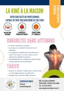 – Suivi à domicile : Programme personnalisé à réaliser entre les séances, avec possibilité d’ajustement à chaque rencontre en cabinet.
